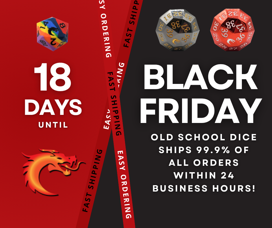 Don't forget to stock up on Old School Dice before the holiday rush! We ship 99.9% of all orders within 24 business hours and our mark for Free Shipping is only $100!